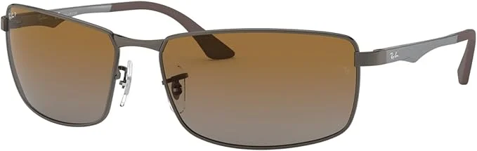 las gafas de sol Ray-Ban RB3498 con lentes polarizadas, con un nuevo diseño deportivo en una elegante forma rectangular de gafas de sol. Las patillas de aluminio cepillado y goma mate proporcionan un aspecto fresco que no te ralentizará. Las bisagras con resorte permiten el ajuste, la comodidad y la durabilidad. Las patillas contorneadas en 3D y mecanizadas proporcionan un toque sutil a tu aspecto de Ray-Ban